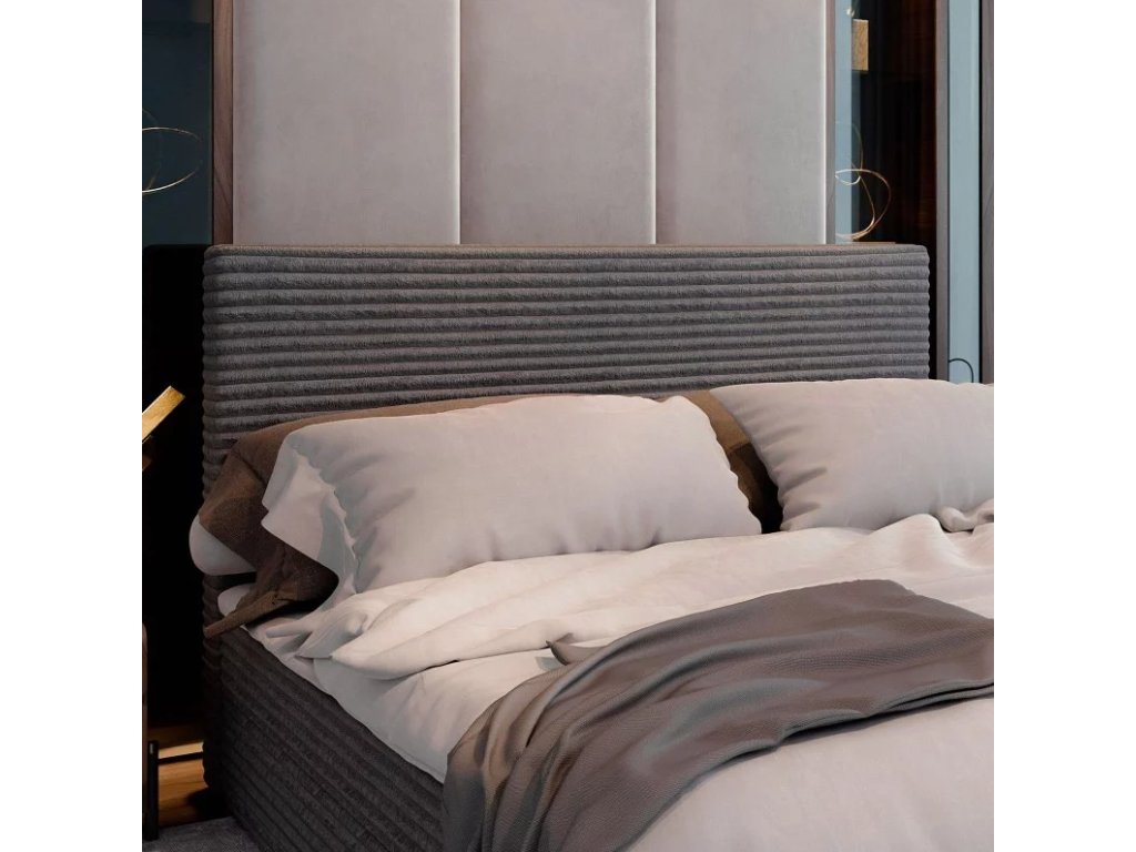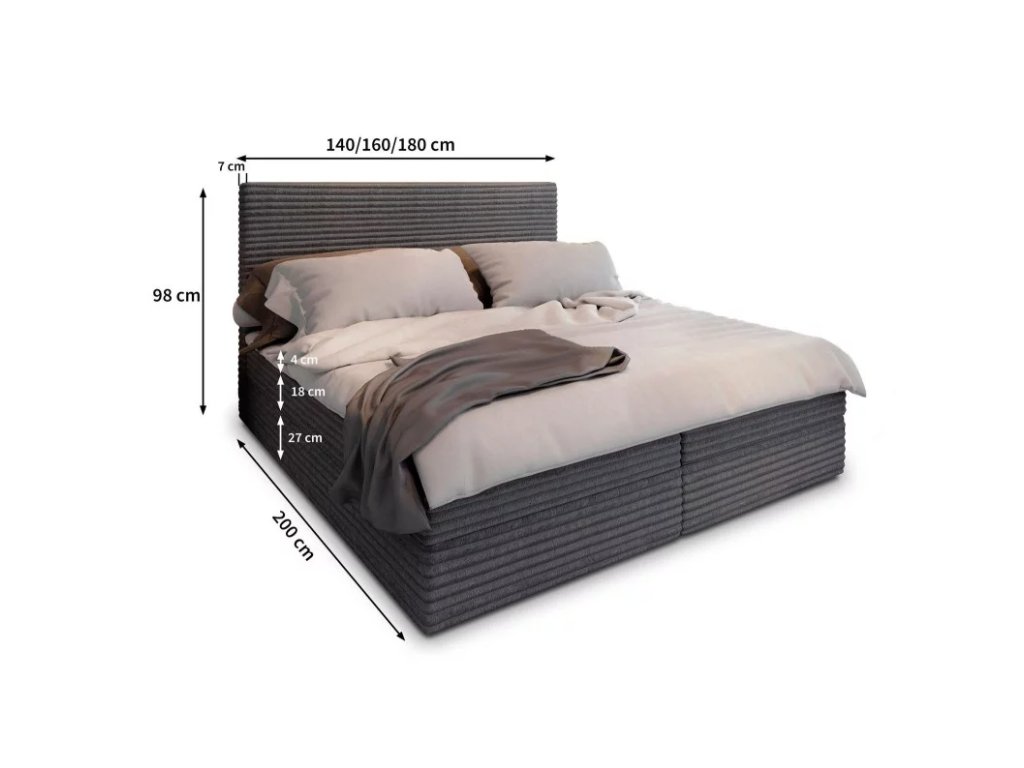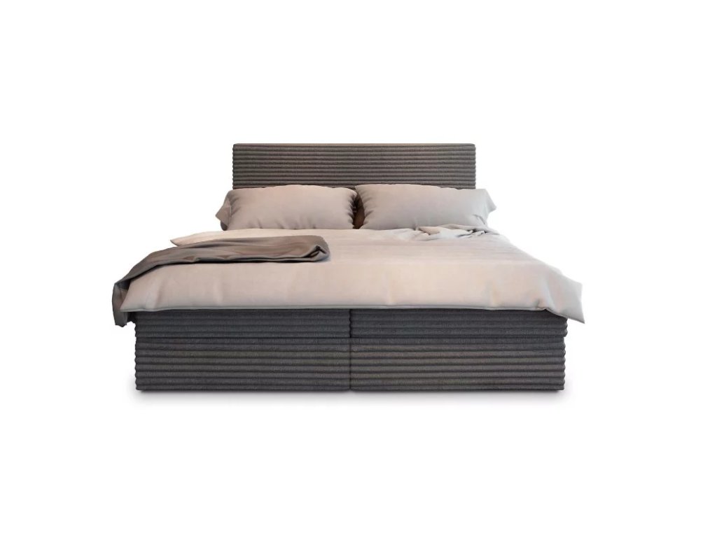 Pat tapițat boxspring ISPIRA 140x200 cm gri