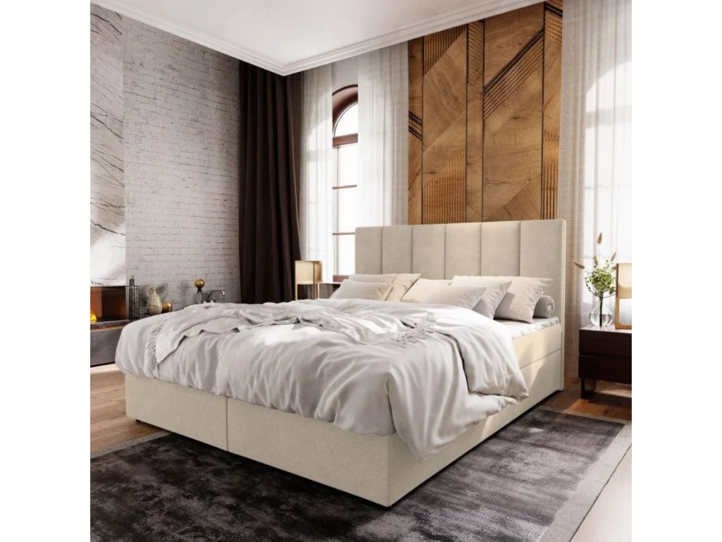 Pat tapițat boxspring MERALIS 140x200 cm bej