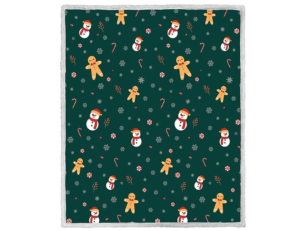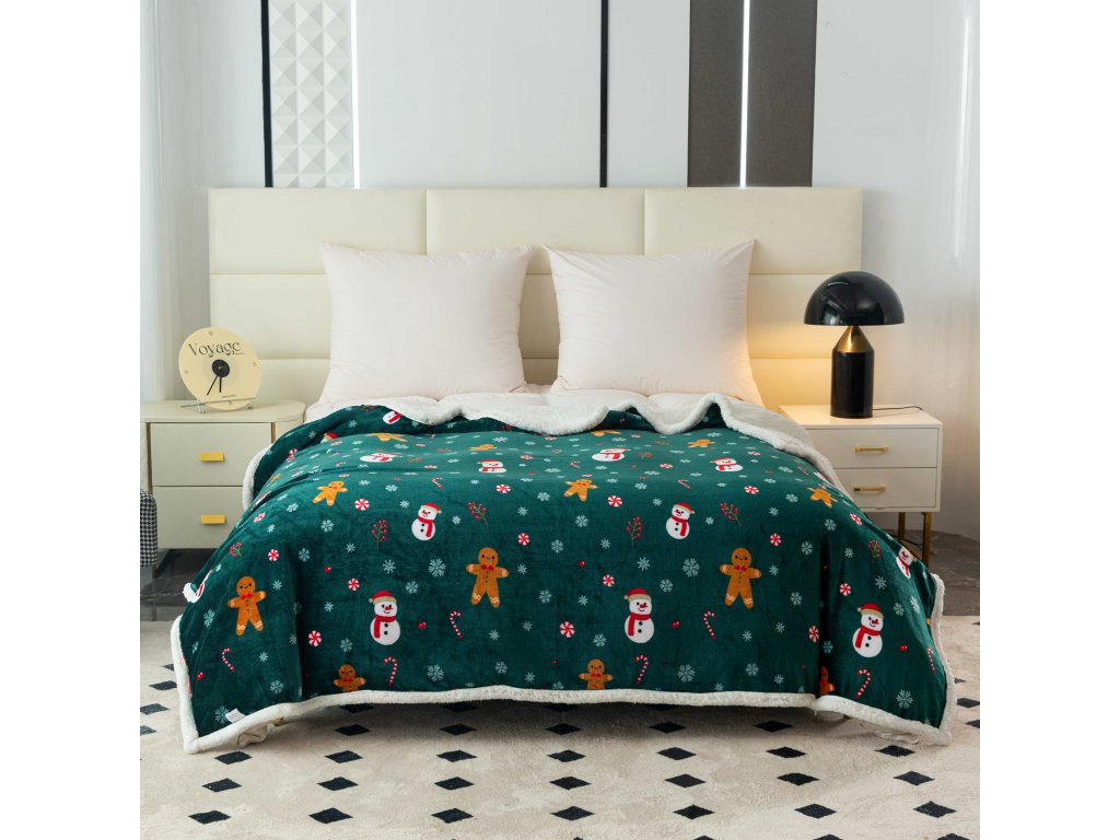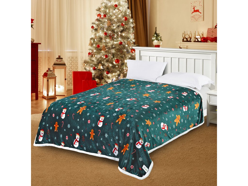 Patura miel de Craciun din microplus SNOWMAN AND GINGERBREAD verde inchis