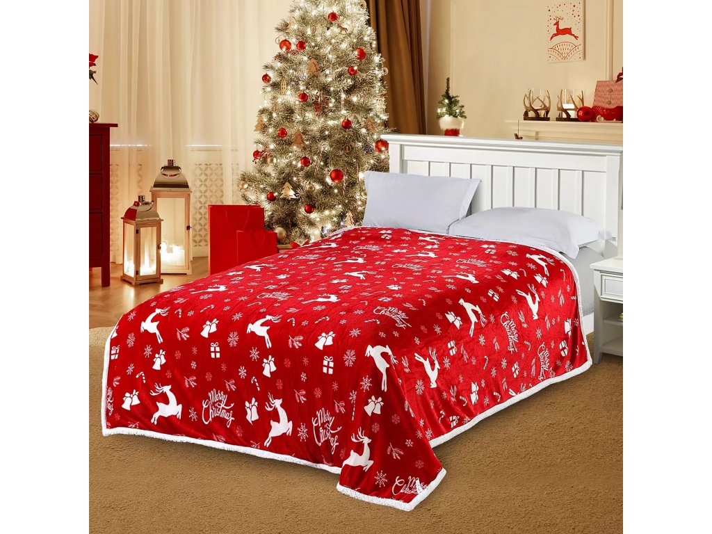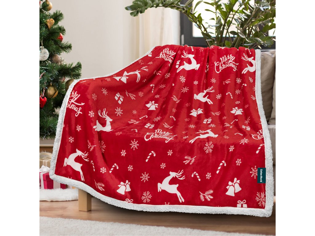 Patura rosie de miel de Craciun de la microplush CANDY BELLS