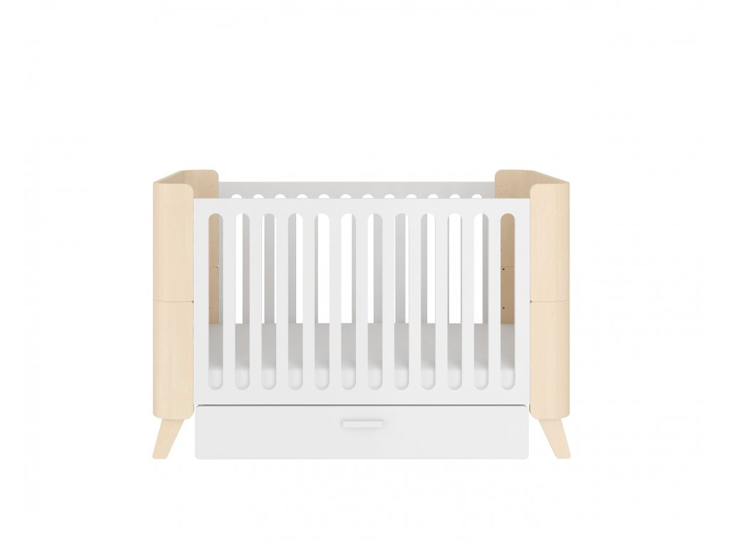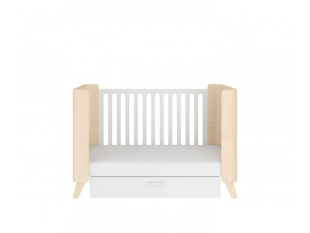 - Partea din față și suportul pentru picioare al pătuțului sunt realizate din placaj de fag vopsit cu o culoare transparentă, care protejează împotriva decolorării și este mai rezistent la zgârieturi