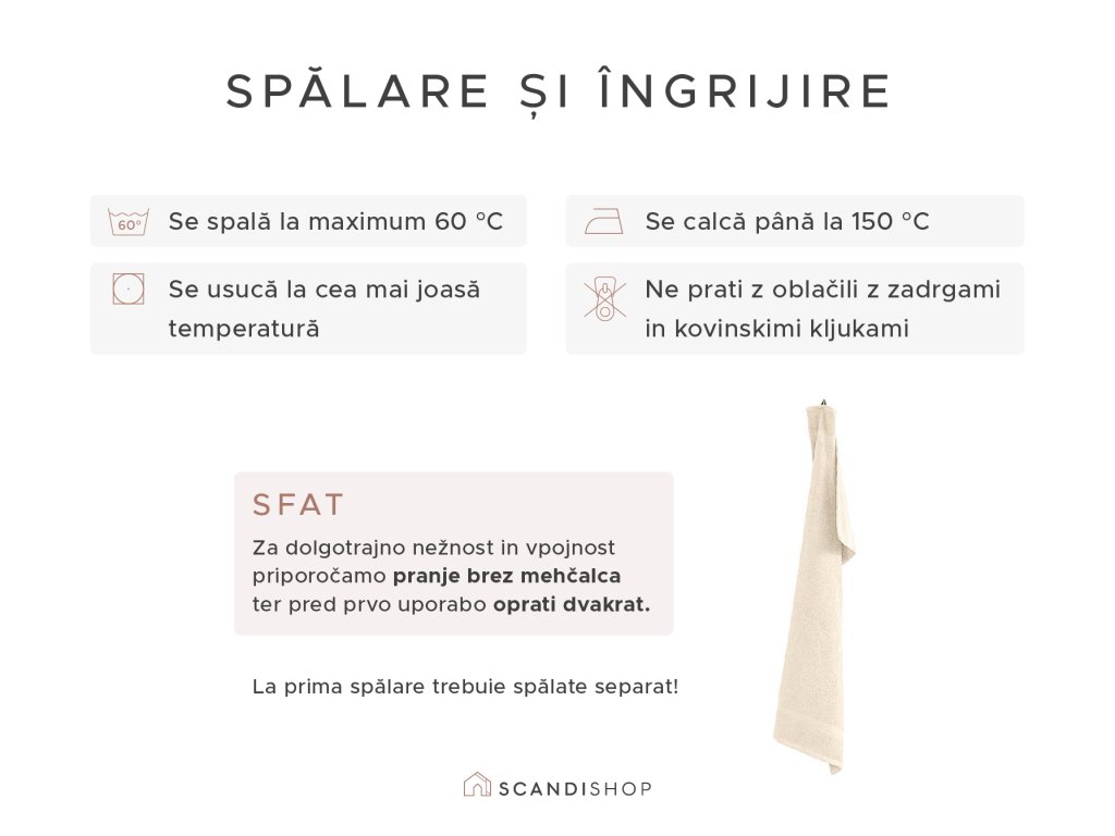 - Spălare max la 60 °C, călcare până la 150 °C