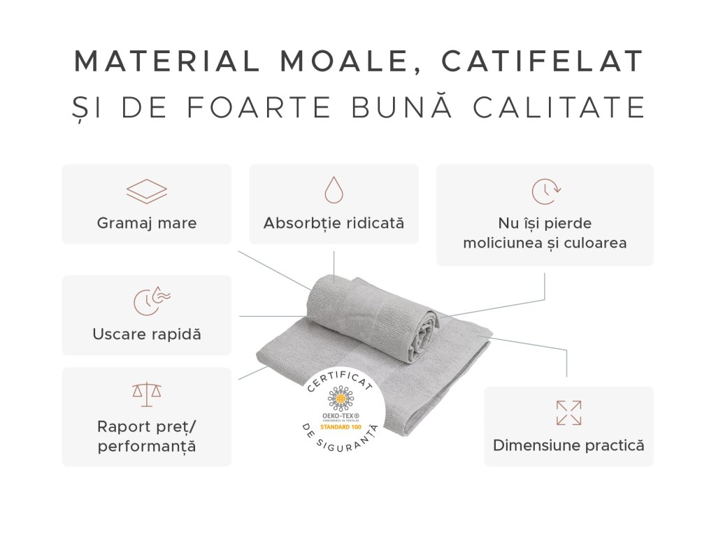 Set prosoape CARRARA 30x30 cm gri deschis 100% bumbac, 3 bucati