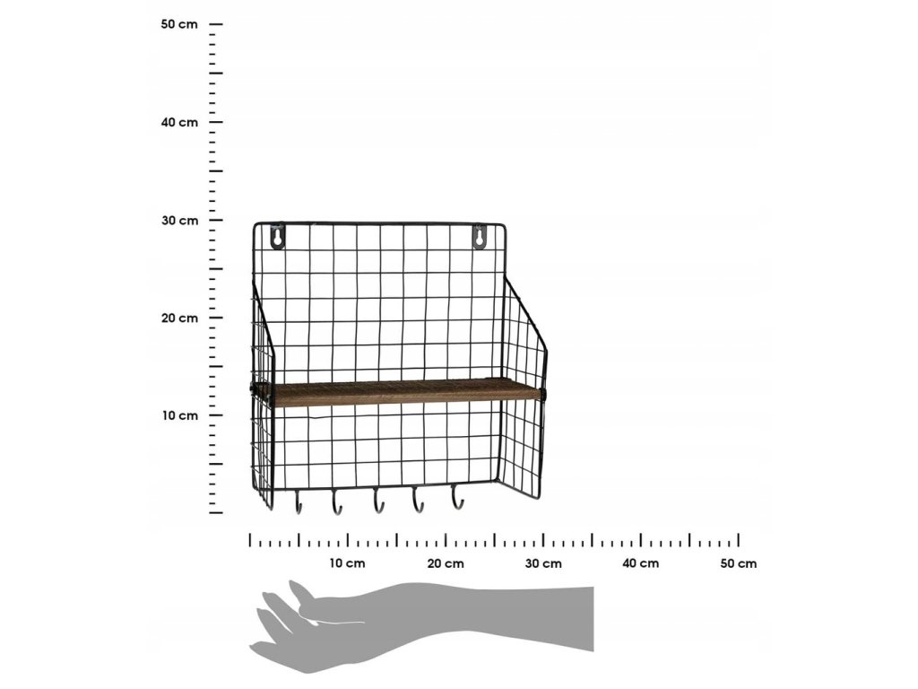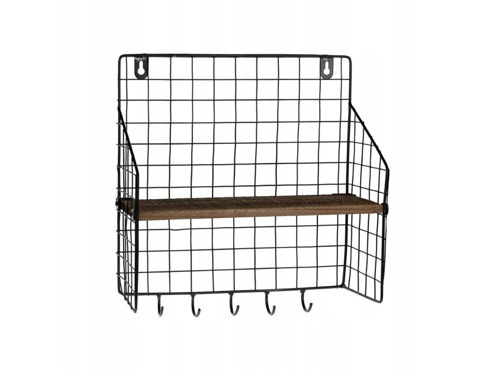 Polita de perete cu 5 carlige LOFT 28x30 cm