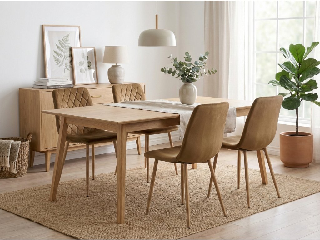 Un stil ce combină forme simple și funcționalitate înaltă. Mizați pe accesorii discrete, o paletă de culori delicate și materiale naturale. Accesorii excelente pentru o sufragerie scandinavă sunt plantele verzi veșnic, naproanele colorate și lămpile mari metalice. Interiorul scandinav nu poate lipsi de ferestre mari și iluminare, asigurând lumină chiar și în zilele scurte. Scaunul Turin se potrivește perfect într-o sufragerie inspirată din țările scandinave. Diverse culori ale scaunelor arată excelent la aceeași masă – nu vă temeți de schimbare.