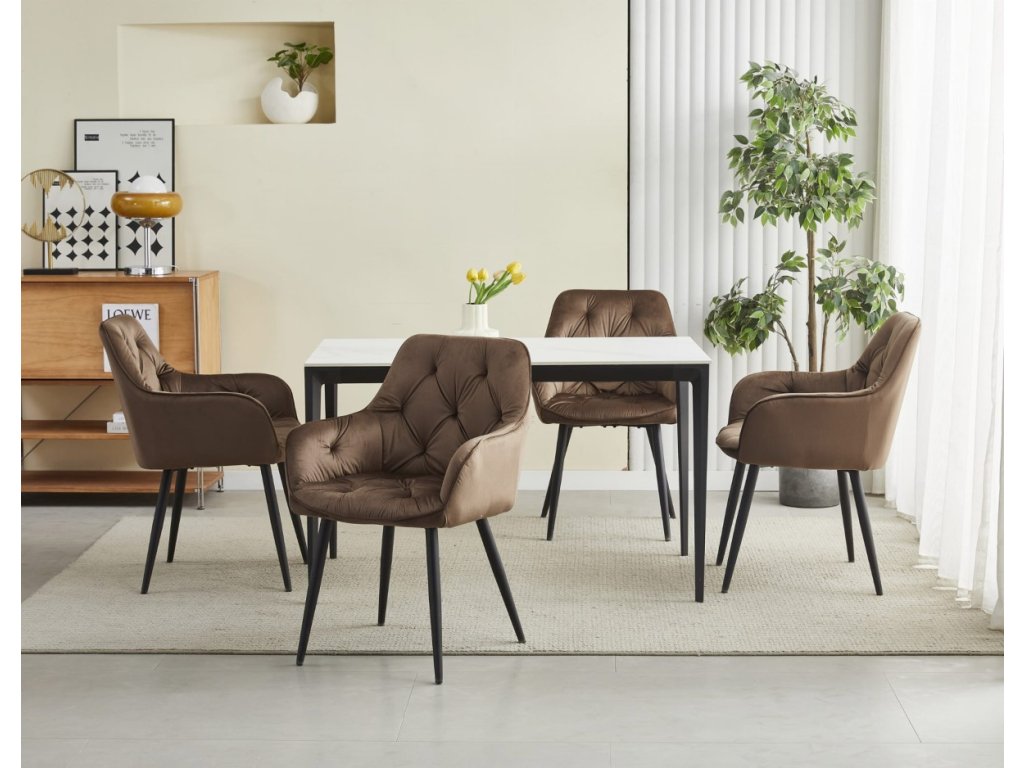 Scaunele de dining din catifea oferă o soluție elegantă și confortabilă pentru orice sufragerie sau colț de bucătărie. Datorită suprafeței moi de catifea, acestea par luxoase atât la vedere, cât și la atingere, în timp ce pernele moi și forma ergonomică asigură confortul chiar și în timpul șederii prelungite. Acest tip de scaun nu este doar o piesă de mobilier practică, ci și un element de design remarcabil, care poate atrage atenția la prima vedere. Este ideal atât pentru mesele zilnice, cât și pentru ocazii speciale cu oaspeți.