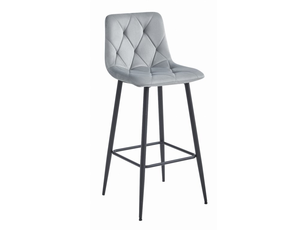 Scaun de bar gri NADO VELVET cu picioare negre