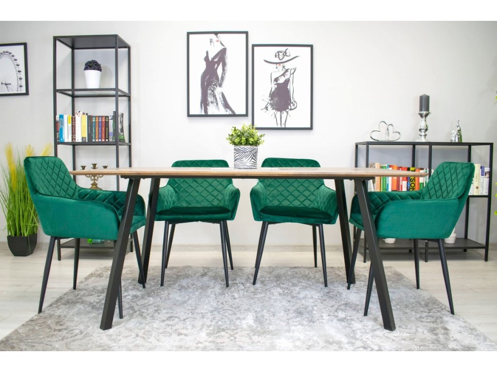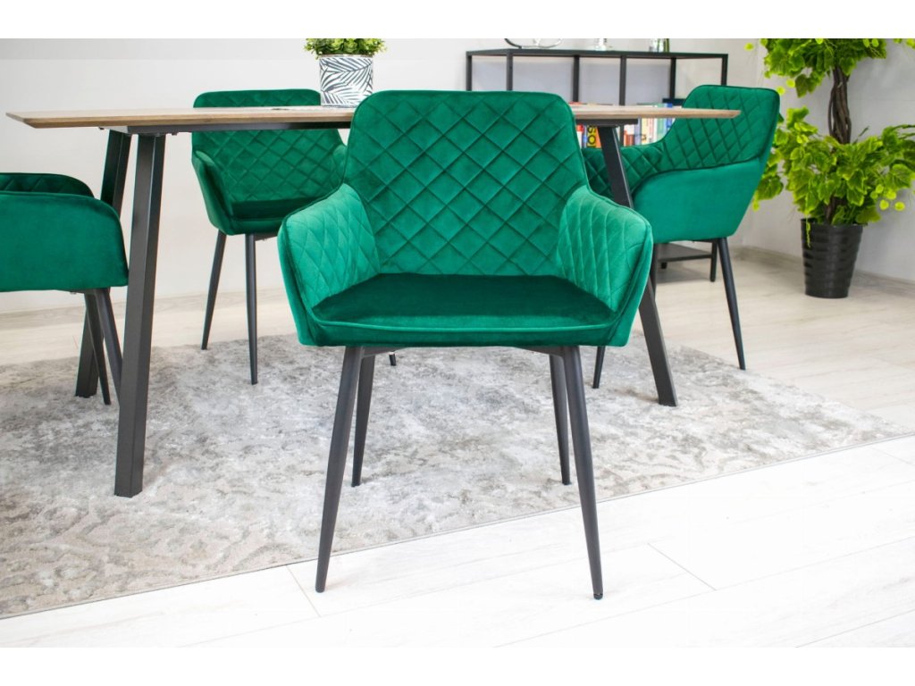Culoarea verde intens adaugă energie și eleganță interiorului. Scaunul se potrivește stilului modern, industrial și scandinav. Combină-l cu mese din lemn, metal sau sticlă și completează interiorul cu textile delicate și accesorii în culori subtile, cum ar fi alb, negru sau bej.