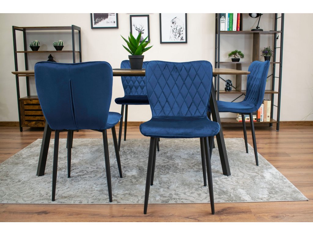 Scaun de masa din catifea Culoare albastru, DUMO