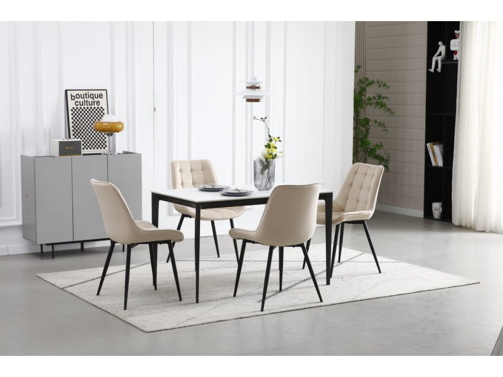 Un stil care combină forme simple și funcționalitate ridicată. Optează pentru accesorii moderate, o paletă de culori moale și materiale naturale. Plantele veșnic verzi, fețele de masă colorate și lămpile mari din metal sunt completări grozave la o sufragerie scandinavă. Interiorul scandinav nu se poate lipsi de ferestre mari și iluminat, care garantează lumină chiar și în zilele scurte. Scaunul de sufragerie bej Bera se potrivește perfect într-o sufragerie inspirată din țările scandinave. Potriviți cusăturile simple și picioarele negre la masă cu elemente metalice. Diferite culori de scaune arată grozav la o masă. Nu-ți fie frică de schimbare.