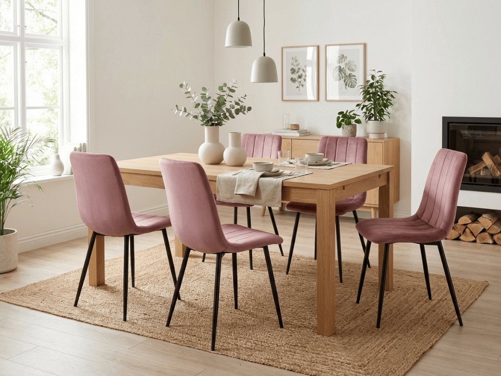 Stilul care combină forme simple și funcționalitate ridicată. Mizați pe accesorii discrete, paletă de culori delicate și materiale naturale. Accesorii excelente pentru sala de mese în stil scandinav sunt plantele veșnic verzi, naproanele colorate și lămpile mari din metal. Interiorul scandinav nu poate funcționa fără ferestre mari și iluminat, care asigură lumina chiar și în zilele scurte. Scaun de masă cu tapițerie Lava se potrivește perfect într-o sală de mese inspirată de țările nordice. Alegeți cusături simple și picioare metalice în decor din lemn să se potrivească cu masa cu elemente metalice. Arată minunat culorile diferite ale scaunelor la aceeași masă. Nu vă temeți de schimbare.