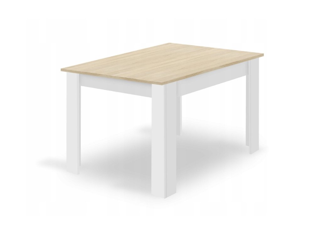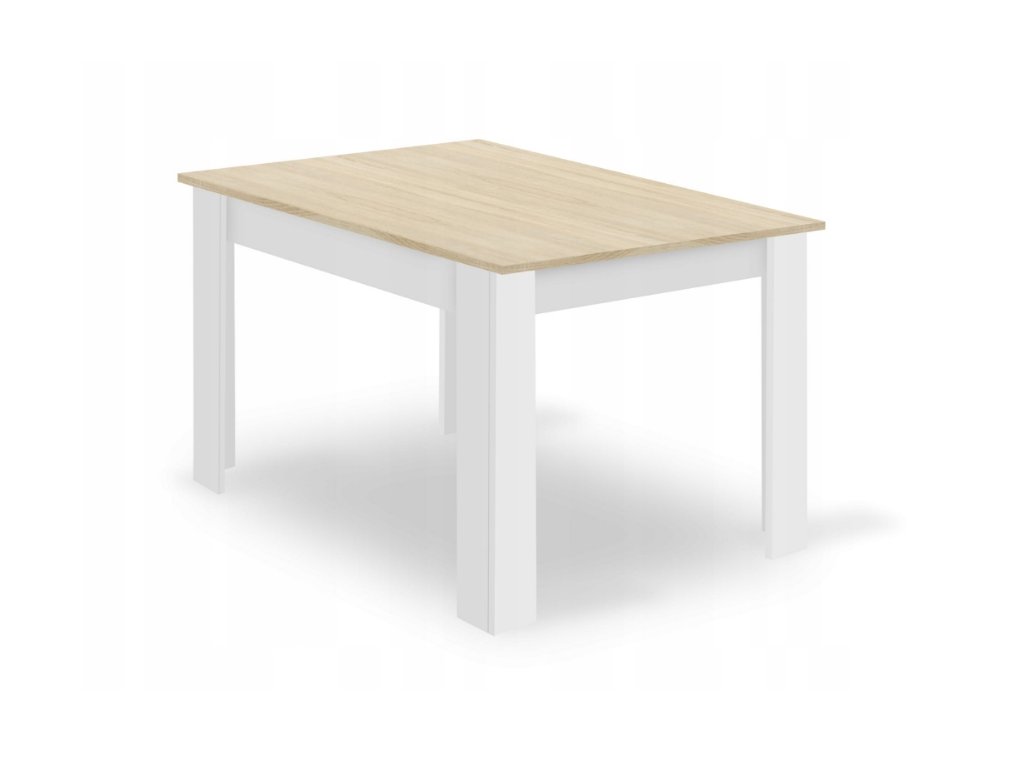 Set de sufragerie 1+4, masa alba decor stejar Sonoma MADO 120x80cm si scaun din catifea gri SOLDEN