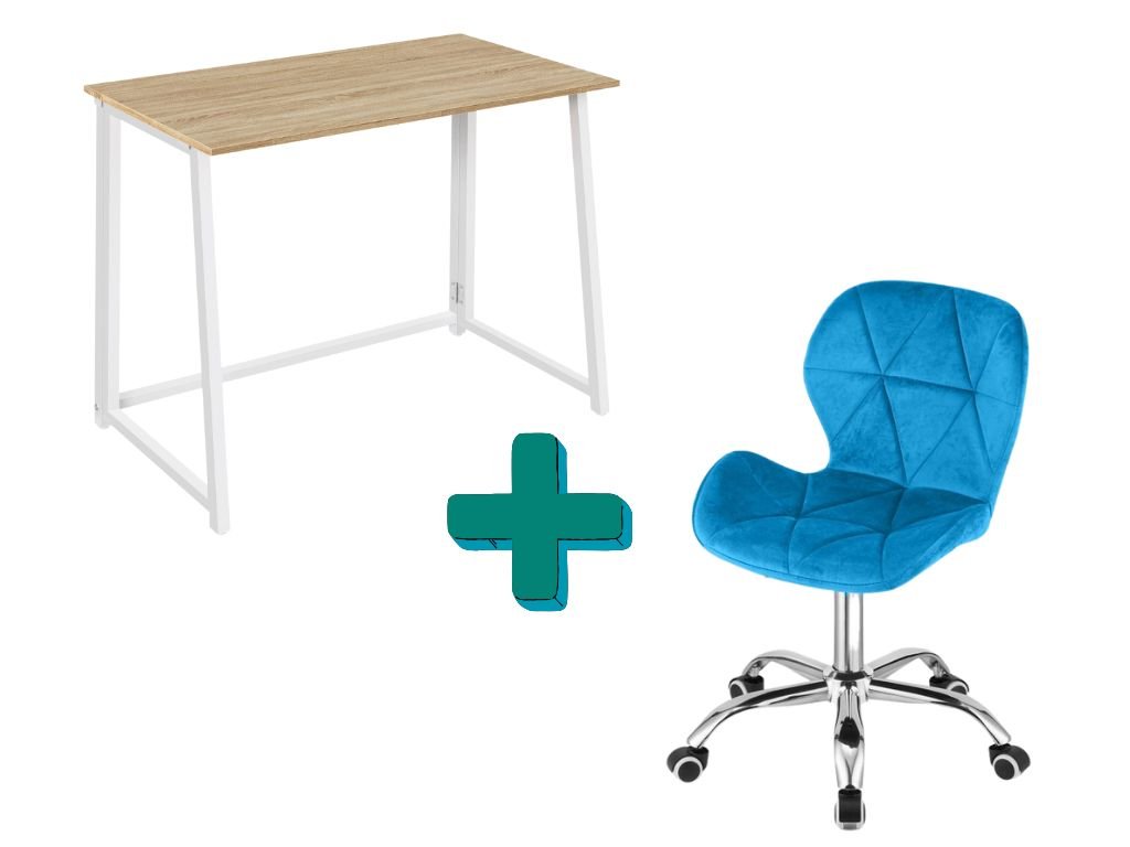 Set pentru birou – birou pliabil ZARIMO 80×40 cm alb + scaun de birou AVOLA VELVET albastru