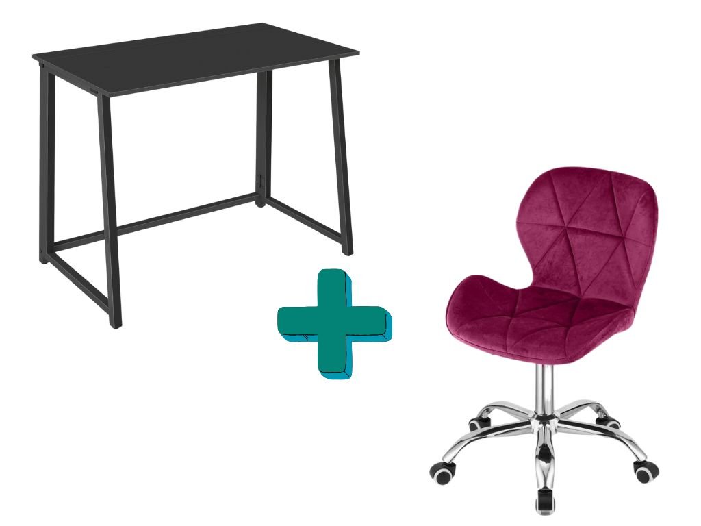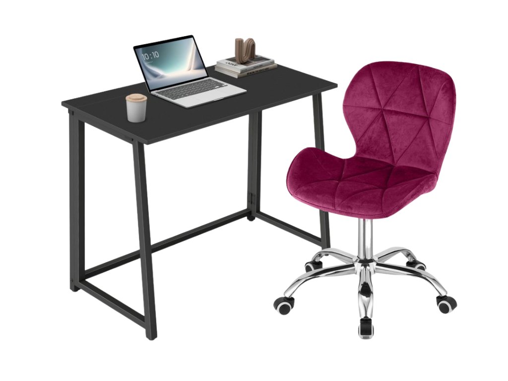 Set pentru birou – birou pliabil ZARIMO 80×40 cm negru + scaun de birou AVOLA VELVET visiniu