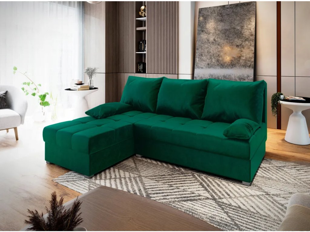 Canapea extensibila cu colt bilateral ZENA, verde inchis