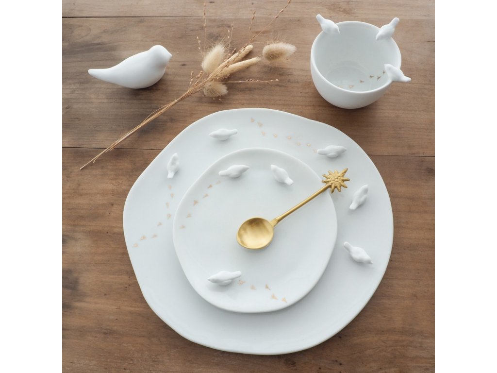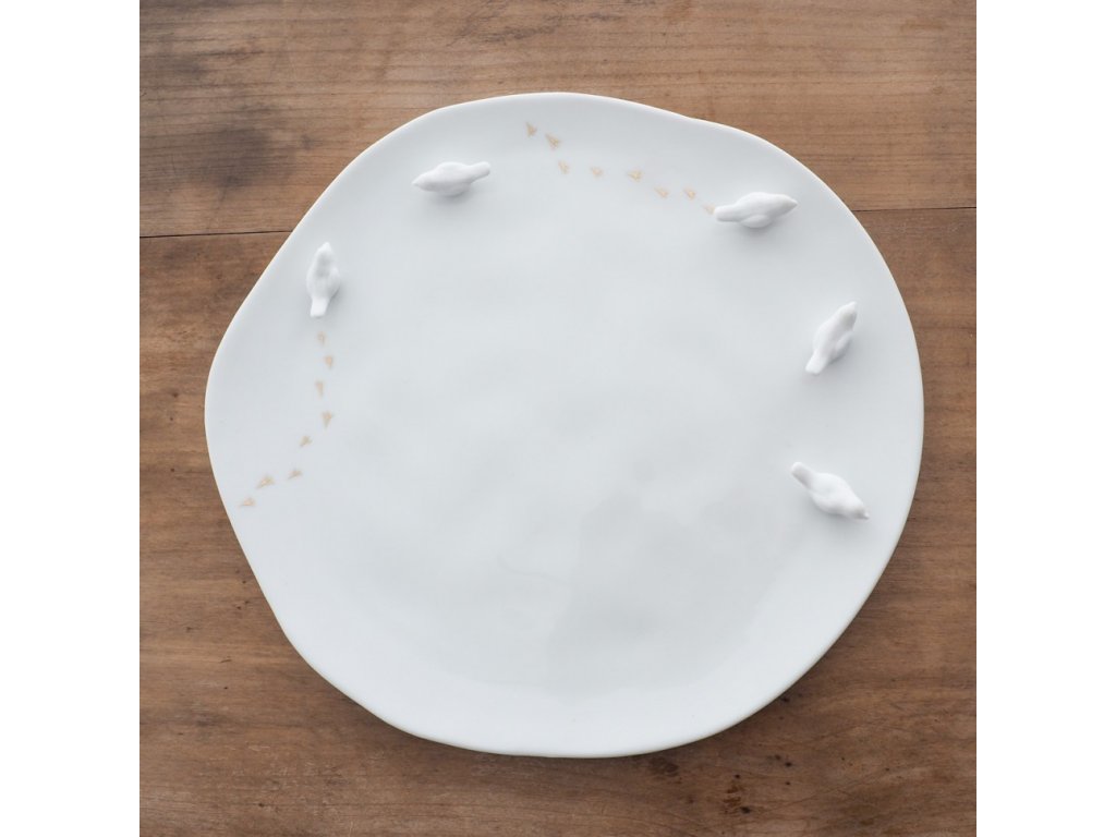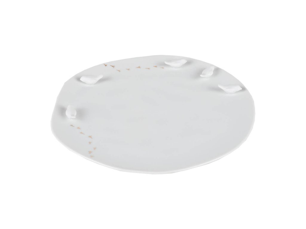 Farfurie medie din portelan Alb cu elemente 3D, BIRDS